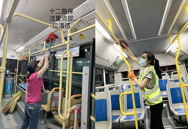 疫情爆發(fā)初期,市公交公司早部署、早安排,積極做好防護(hù)口罩、消毒物品的采購(gòu)和儲(chǔ)備工作,向一線駕駛員送去2500余個(gè)口罩和540罐84消毒液。為了讓車(chē)輛“徹底消殺、健康出發(fā)”,公司在市內(nèi)設(shè)置2個(gè)定點(diǎn)車(chē)輛消殺點(diǎn),采取發(fā)車(chē)前、收車(chē)后的消毒方式,從車(chē)頂棚、車(chē)門(mén)、地板到車(chē)廂內(nèi)部設(shè)施進(jìn)行全面清掃、消毒,對(duì)乘客頻繁接觸的扶手、座椅進(jìn)行重點(diǎn)消毒擦拭,不留死角。