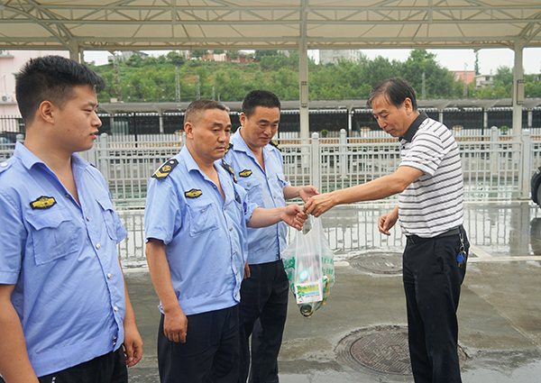 7月17日,市公交公司黨委書記、董事長張曉強、總經(jīng)理熊衛(wèi)軍、黨委副書記錢萬輝一行為一線職工送去“夏日清涼”和關懷,讓他們在線路上感受“涼爽”,不斷提升公交運營服務質(zhì)量。