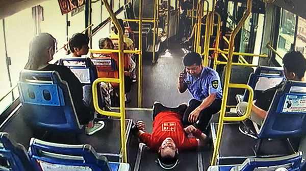 8月2日,市公交公司駕駛員王強像往常一樣,駕駛著6路公交車行駛在線路上,當(dāng)車行駛到天貿(mào)城站時,一男子突然倒在車內(nèi),王強見狀立即將車緩慢停靠在站牌旁,向暈倒男子方向跑去,一邊安撫他防止其睡著,一邊撥打120急救電話。這就出現(xiàn)了文章開頭的一幕。