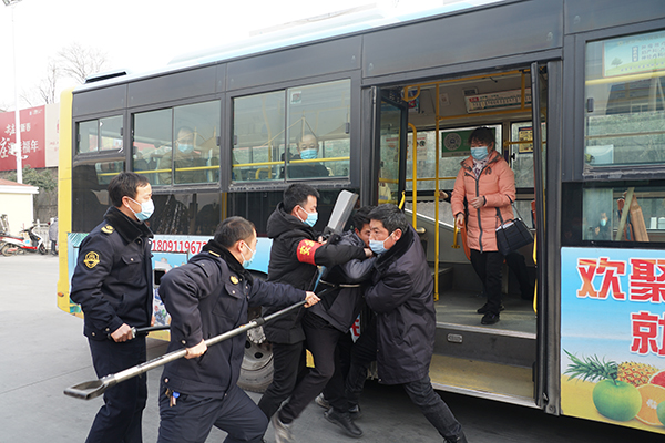 在火車(chē)站首末站,恰逢一車(chē)隊(duì)工作人員正在開(kāi)展疫情防控應(yīng)急演練,一未佩戴口罩的乘客欲乘車(chē),駕駛員制止后,該乘客非但不聽(tīng),強(qiáng)行上車(chē)后辱罵、持刀相向駕駛員,駕駛員隨即將情況報(bào)告車(chē)隊(duì)長(zhǎng)并報(bào)警,車(chē)隊(duì)安保人員將其制服??赐暄菥毢?,熊衛(wèi)軍、錢(qián)萬(wàn)輝對(duì)工作人員面對(duì)突發(fā)事件的應(yīng)急處置能力點(diǎn)贊。