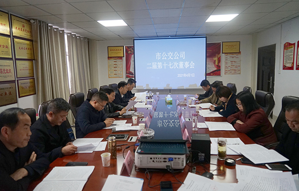 4月1日,市公交公司召開2021年第一次股東會暨二屆十七次董事會,公司全體股東、董事會成員參加會議,監(jiān)事會、審計監(jiān)督組成員、紀(jì)委書記列席會議。公司董事長張曉強主持會議。