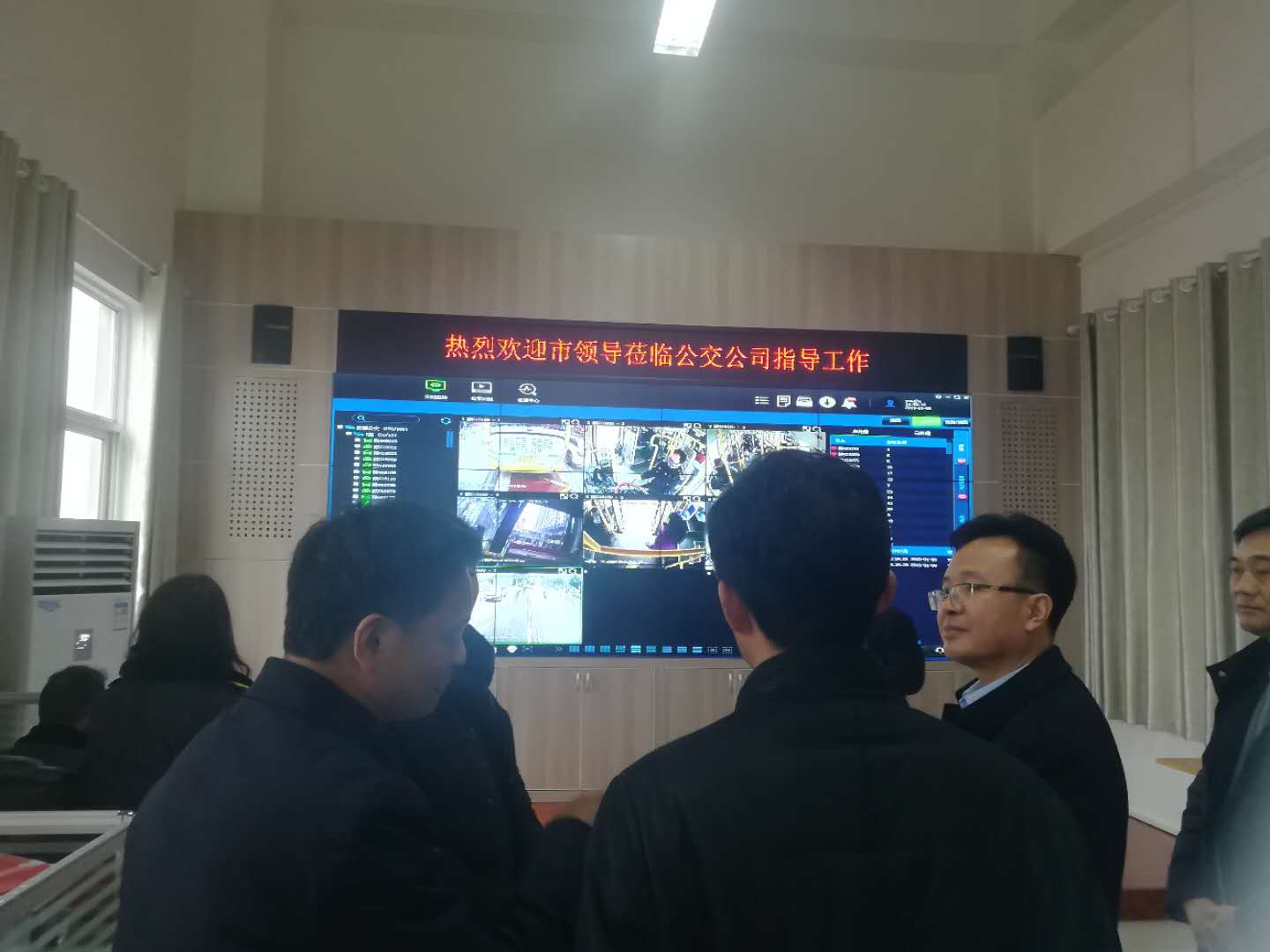 2019年1月8日下午,市委常委、副市長(zhǎng)劉建平、市機(jī)關(guān)事務(wù)管理局副局長(zhǎng)譚學(xué)峰、市交通局局長(zhǎng)江家安、市運(yùn)管局局長(zhǎng)王啟仲等一行六人到公交公司調(diào)研指導(dǎo)工作。公司黨委書(shū)記、董事長(zhǎng)張曉強(qiáng)、總經(jīng)理熊衛(wèi)軍、黨委副書(shū)記錢(qián)萬(wàn)輝、副總經(jīng)理王彩東陪同調(diào)研。